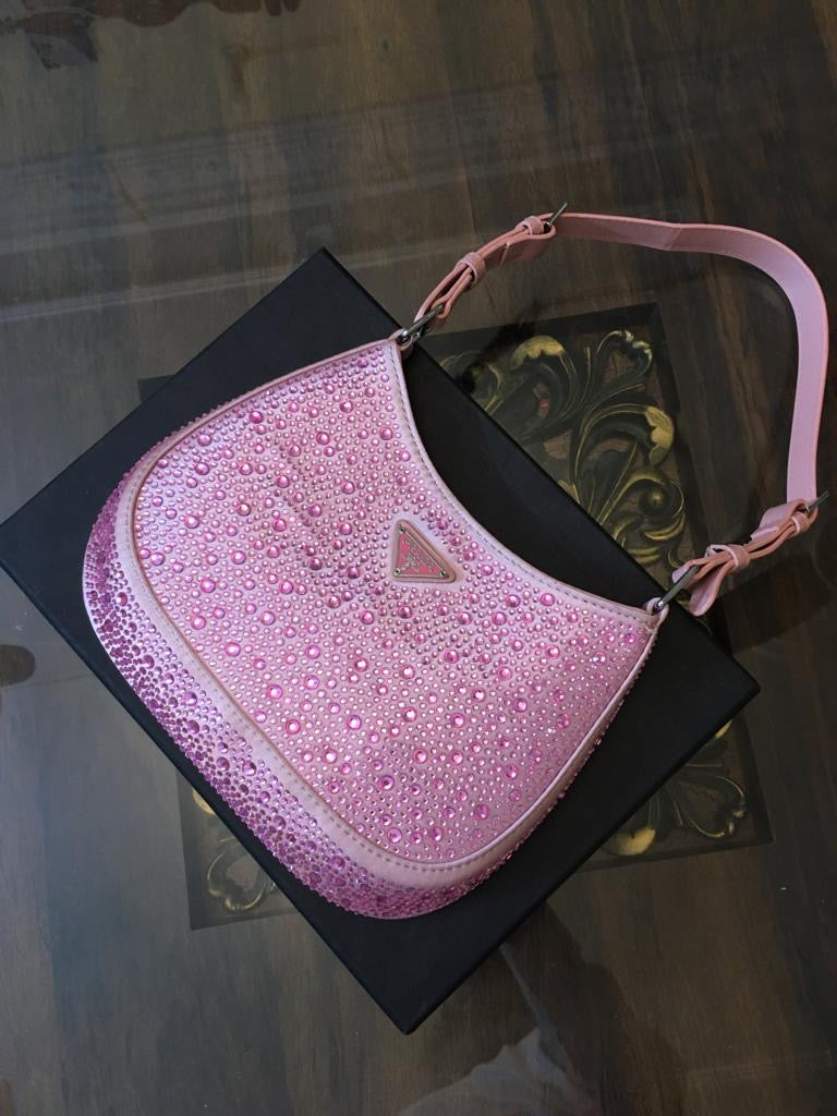 Alabaster Prada Cleo Satin Bag with Crystals